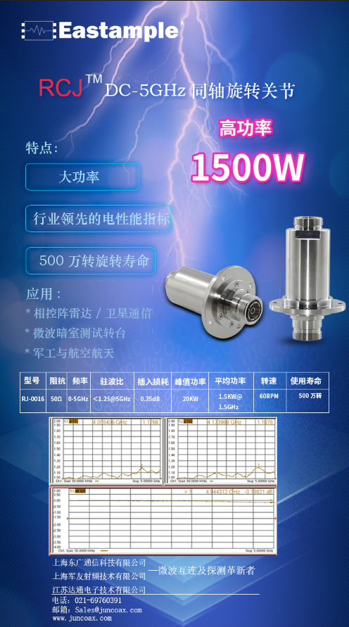 东广推出新一代同轴旋转关节,具备直流传输能力,关键电性能指标达行业领先水平。